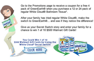 Print a coupon good for a FREE 4-pack of White Cloud Green Earth when you buy a 12 or 24-pack of regular White Cloud Tissue Paper. This is limited to the first 50,000 prints, so I would print yours now!