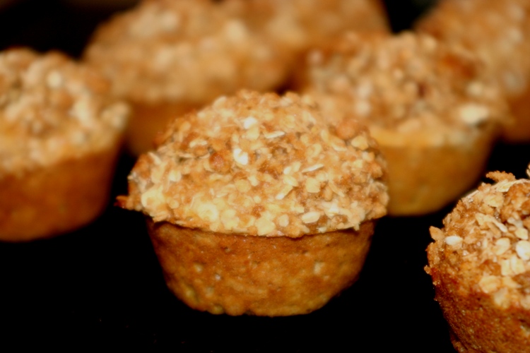 4. Divide batter among 12 muffin tins, and sprinkle the streusel topping.