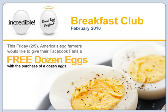 Become a fan of the Incredible Edible Egg page on Facebook to receive a BOGOF coupon for a dozen eggs!