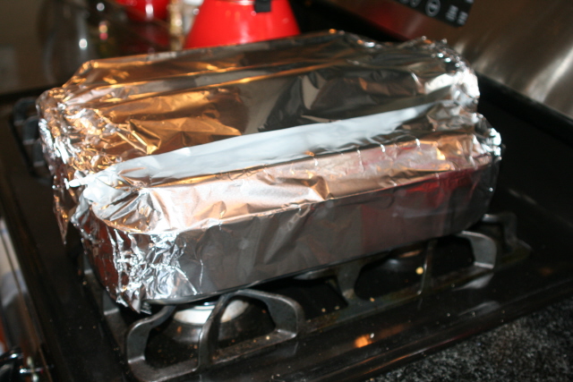 3.  Cook ribs in roasting pan on a rack for 3 hours at 250 degrees.  Be sure to cover the ribs fully with foil, cover tightly so that no steam escapes.  This is the key to ribs that fall off the bone!