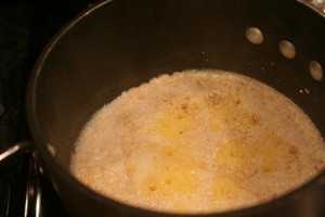 2. Cook grits according to package directions, while you cook mixture below. Once done, stir in melted butter.