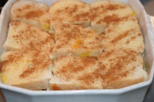 - 12 slices day old French bread (3/4 inch thick) – I use sweet Italian bread