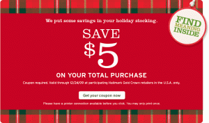 You can print this $5 off $5 purchase at Hallmark printable here.