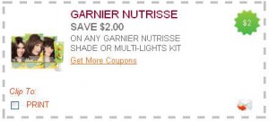 - $2/1 Garnier Nutrisse Shade or Multi-Lights Kit